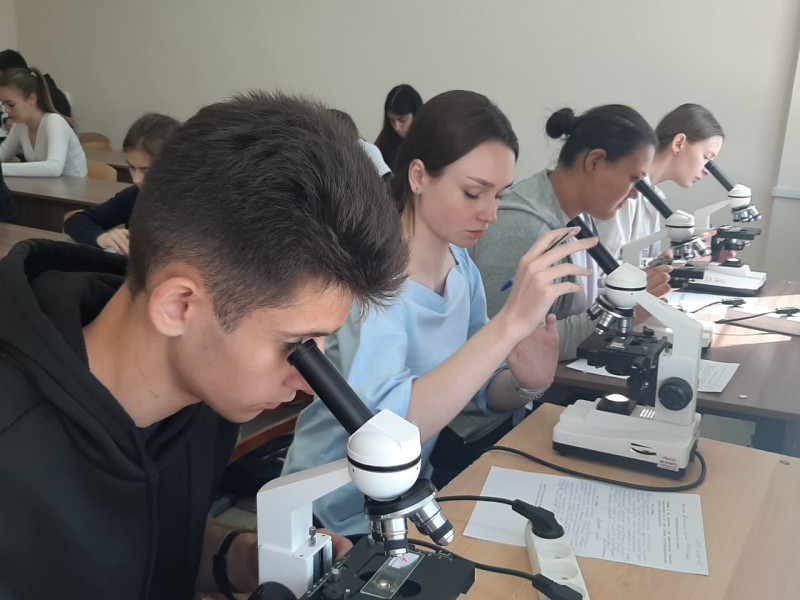 Участники, набравшие проходной балл, были приглашены на II практический этап, который состоялся базе ВолгГМУ. На этом этапе школьники решали практико-ориентированные задачи, работали с микропрепаратами, определяли вид и тип ткани по фотографии.