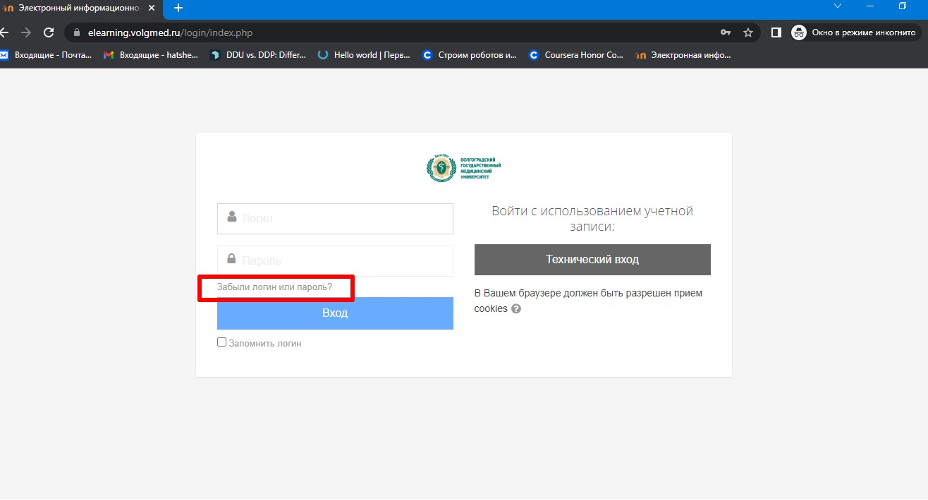 1. Нажать на кнопку «Забыли логин или пароль?»