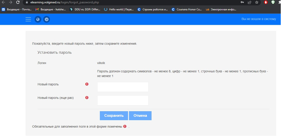 6. Вводим новый пароль и сохраняем