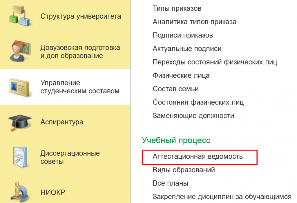 3. Перейти в Аттестационные ведомости