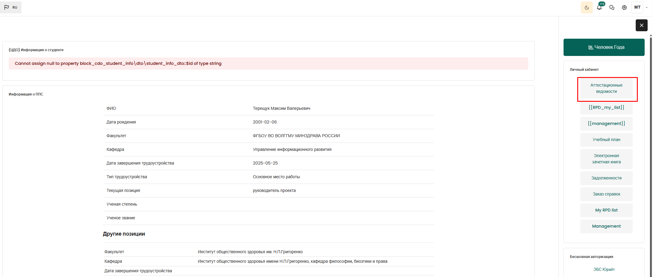 1. На Курсориуме https://study.volgmed.ru/ перейти в раздел Аттестационные ведомости.